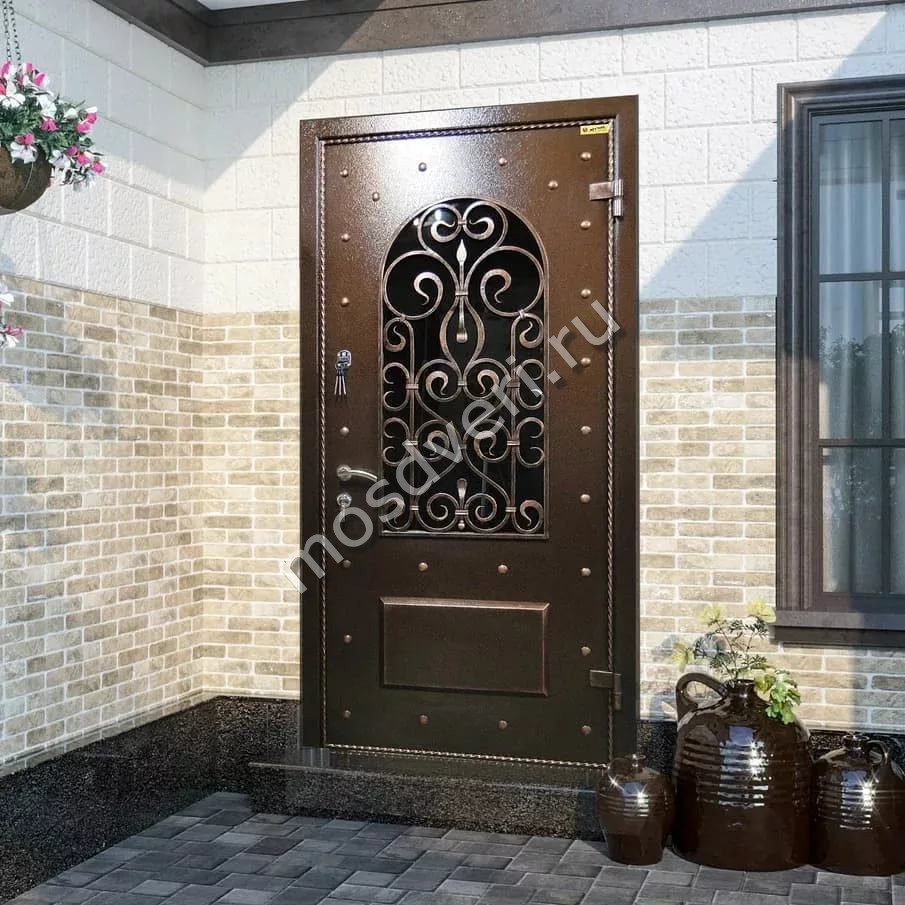 Входные двери со стеклом и ковкой в Сельце